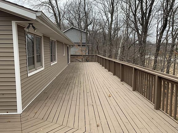 Incredible Ranch style home located in the exclusive Wabash River Hills Subdivision. Enjoy the view of 1.96 acres on a gigantic back deck that runs the length of the house. The main floor boasts 1,344 sq ft., hardwood floors throughout, a massive dining room, sizable living room, kitchen, 2 bedrooms and a bathroom. The full finished walkout basement has an enormous family room, wood fireplace, bar area, 2 more bedrooms, a bathroom, and a 2nd kitchen. There is also laundry on the main level and the lower level. Rounding out this amazing house there is a large 3 car attached garage and a newly updated covered front porch. This home is truly a must see, call for your appointment today!!!!!