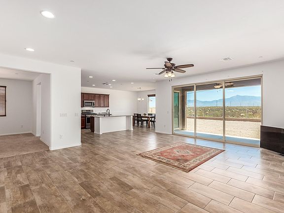 This beautiful one year old home has been gently lived in and still feels brand new. Various upgrades include wood plank tile throughout and ceiling fans throughout. The master bedroom offers coffered ceilings and a large walk-in closet while the master bath offers a double vanity and huge walk-in shower. The kitchen has a large center island, granite counters, stainless steel appliances, a walk in pantry, and the all appliances are included! You'll love this premium lot, with no neighbors to the rear and the triple slider to take in the mountain views. This home is located on a cul de sac and the garage offers a 4 foot extension. This wonderful community has the elementary / middle school located within, as well as parks and trails throughout. Don't miss out on this lovely home.