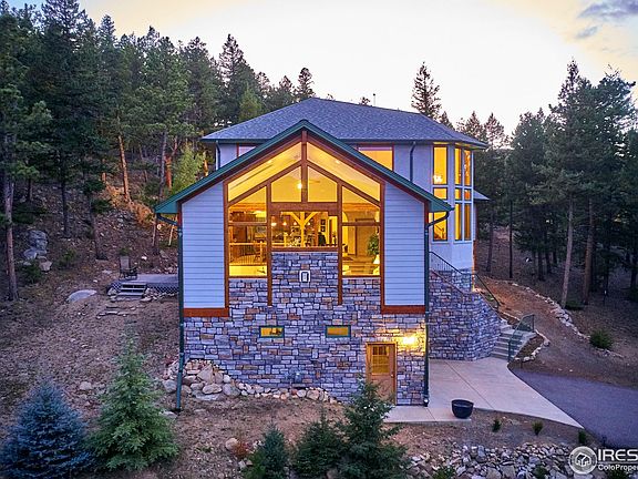 Colorado Mountain Home offers the finest in soft spoken luxury. Come home to sunshine, privacy and views that will take your breath away. 20 minutes to Boulder and Golden - 40 minutes to Downtown Denver. Foyer welcomes you to open concept living, cathedral ceiling and post & beam craftsmanship. Gourmet kitchen features quartz, stainless appliances, pendant lighting and bar seating all open to dining and impressive great room with expansive windows framing nature in all her glory. Circular staircase leads to a loft, then opens thru French doors to master suite with 5-piece bath. Spacious lower level presents a 9' ceiling, wet bar to entertain and cozy fireplace surrounded by stone. Charming path leads up property to rock outcrops and views of the Continental Divide. Peace, quiet and wildlife flourish here. High speed fiber optic internet available. K-8 school is just a short walk away. Denver International Airport is less than an hour's drive. Eldora Mtn Ski Resort is 30 minutes away.