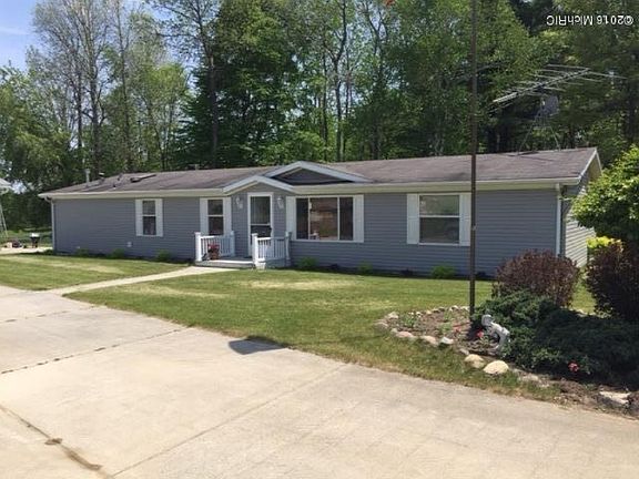 2000 Doublewide in great shape (well taken care of), 1858 square feet. Home features three bedrooms and two full baths. Living room, family room and sun room, Eating area off kitchen and a dining area. 4.2 acre lot which provides plenty of room for a large garden and a quaint woods you can view from the sun room. The home is on a poured foundation with a cement crawl space. There is a 40 x 60 pole building that has two stalls for your car or truck and an area that can be turned into a shop. This building has water and electricity and a connection for a home generator. Close to Alma, away from the highway noise and a pleasant restful setting.