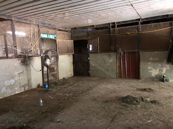 Extra-large Horse Barn an on 2.71 acres with poured concrete floors, seven oversized concrete stalls, tack / feed room, complete with indoor wash rack area. Attached Large Indoor Riding Arena. Three Phase electric on barn. The house and barn have separate electric meters. Additional potential one bedroom, one bathroom living area/apartment located in the barn. Building next to the house could easily be another stalling area. House has a metal roof installed in 2011, home is a 2 bedroom, 1 bathroom with 2 living areas. SELLING AS IS.