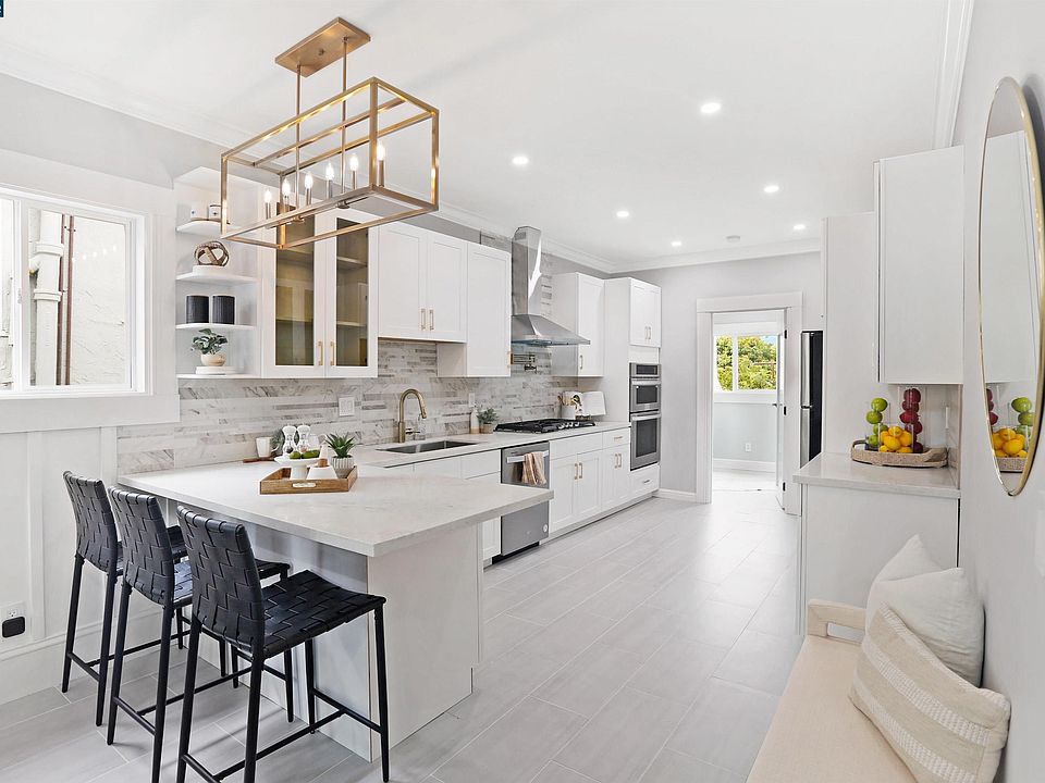 Step into a world of modern elegance as you enter this fully remodeled residence in a desirable friendly NOBE neighborhood. Featuring three bedrooms, an office and two bathrooms upstairs, as well as a 1Bed/1Bath ADU and tandem garage with abundant storage space downstairs, this home showcases a seamless blend of contemporary design and timeless charm, creating an inviting and sophisticated ambiance. Thoughtfully reimagined to maximize functionality and comfort, this home incorporates the restored Craftsman charm with modern conveniences. The gourmet kitchen is a chef's delight, boasting top of the line appliances, custom cabinetry and elegant finishes. Enjoy a private office space on the work-from-home days. Outdoor living is equally impressive and offers a serene escape from the hustle and bustle of daily life. Conveniently located, this remodeled property is within close proximity to Emeryville Shops, BART and the Bay Bridge.