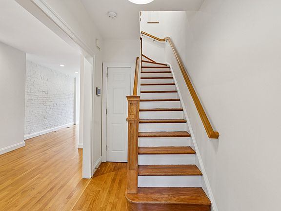 All-white bathroomLarge storage closetLovely quiet one-way streetBuilt-in bookshelfExposed brickExposed beamsSubway tile