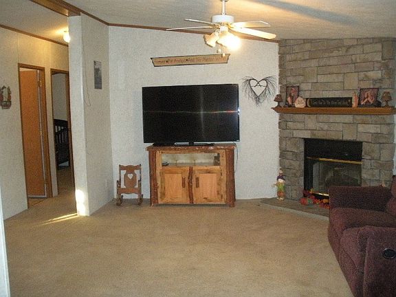 Well maintained country home with appliances. Detached garage, shed. Oak cabinets in kitchen with center island. Fireplace in living room. Garden tub in master bath, with walk-in closet. Two skylights. Covered front porch. Minimal traffic, yet close to town. Secondary heat source, exterior wood/coal boiler. One car garage is insulated and has 220 power. Propane tank stays with property