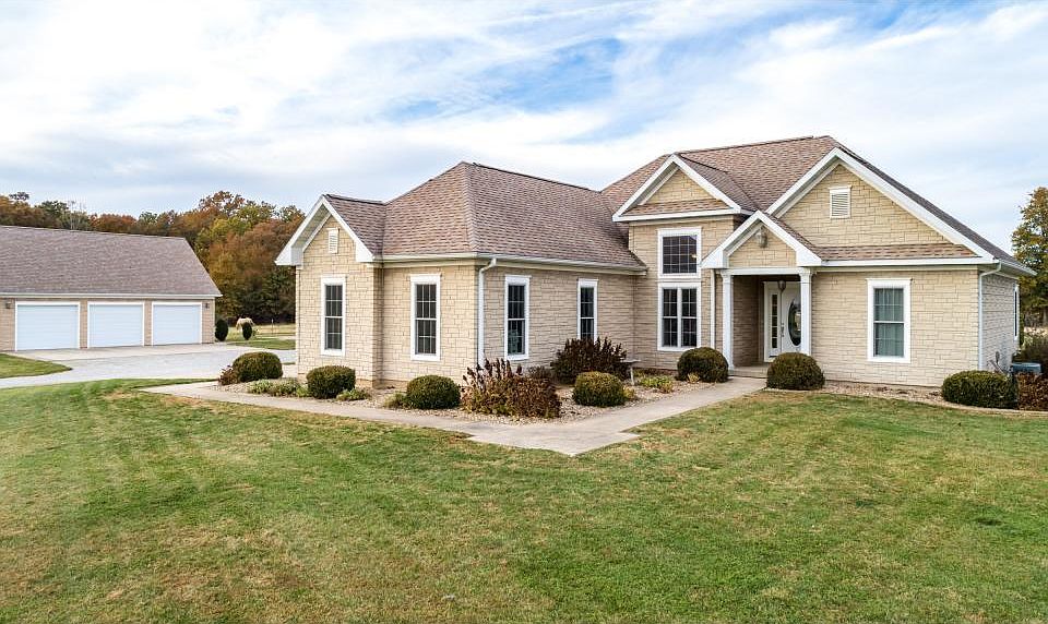 Dreaming of a life in the country? This home has 11.5 acres , a live stock barn with electric & water, loft and chicken coop. Fenced in pasture for the horses. There is a 2 car attached garage and 3 car detached garage. Eat in kitchen with separate dining room. Stove, refrigerator, dishwasher, dryer & washer stay. 3 bedrooms , 2 bathrooms on the main floor. Wood burning fireplace in the living room. Washer & dryer are on the main level. Master bedroom has a master bathroom with a jetted tub and large walk in closet. Full basement with extra storage, a large family room , bathroom and 4th bedroom. Patio off the back of the house. Concrete area for tennis court , basket ball court or could be the start of an additional pole barn. Seller is offering a $5,000 flooring allowance.