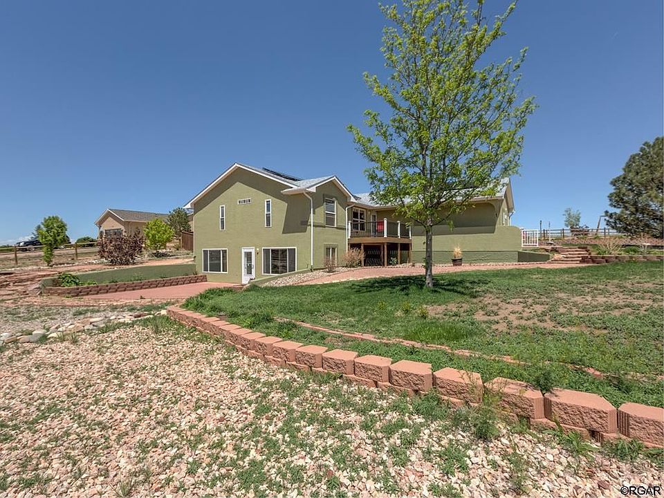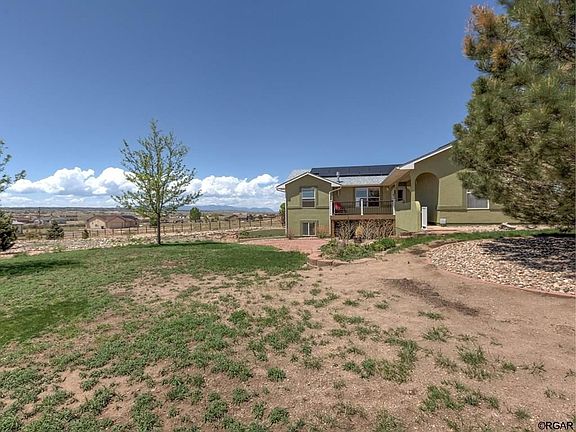 Unbelievable views and hassle-free living in this single-owner 4 bedroom, 3 bath contemporary ranch home built in 2002 with fully finished walk-out basement! Large windows to capture the view from every angle, living room features lofted ceiling and built-in gas fireplace. Brand new luxury vinyl tile installed in 2021. Large family room in basement features more views and kitchenette/wet bar, with additional refrigerator. Solar panels make monthly electric bill a mere $9.28, and back patio is already wired for hot tub. Simply perfect privacy in this Northeast corner of Pueblo West, with open spaces and immaculate xeriscaping, stamped concrete patio, and new composite deck. Gardeners will delight in the waist-level raised garden beds with built-in trellises, cottonwood trees, butterfly bushes and Russian sage, gardening shed with water, separately fenced play area, and attention to detail around every corner. New storm doors, new roof and exterior paint completed in 2019. Finished, heated, and cooled three-car attached garage, and bonus workshop/detached garage ready for any project your heart desires. Hurry and make this your forever home!