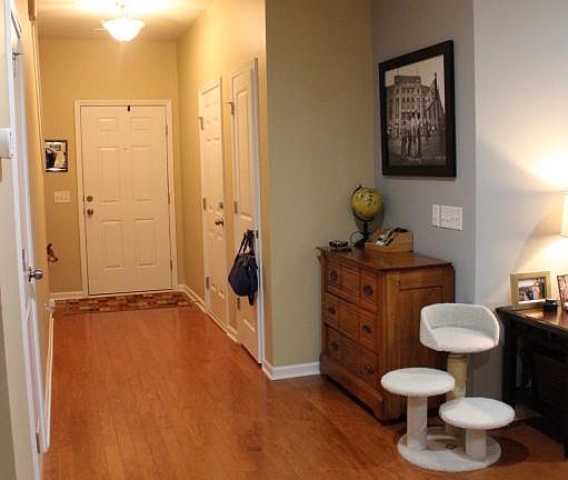 This home has been well maintained and is in turn key condition. The entrance opens to a great oversized living room with a ceiling fan and flows to the spacious eat in kitchen. The kitchen has granite countertops, upgraded 36'' cabinets with under mount lighting, stainless steel dishwasher, range, and built in microwave as well as recessed lighting. There is hardwood flooring throughout the downstairs, ceramic tile in all bathrooms, and upgraded carpet upstairs. Upstairs the spacious master bedroom is split from the other bedrooms and offers a sitting area, ceiling fan, and plenty of natural light. The master bath has a separate garden tub and shower, dual vanity, and large walk in closet. Additional bedrooms are located on the top rear of home and both have ceiling fans. The laundry is