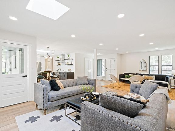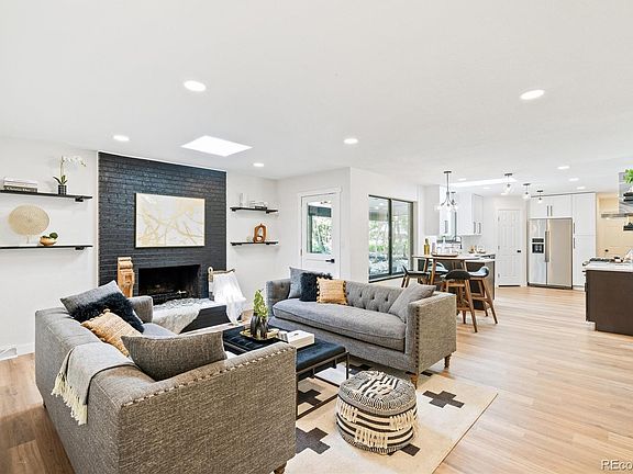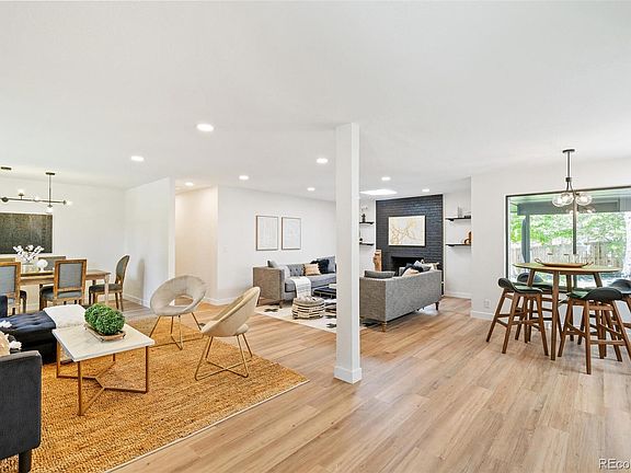 Stunning remodeled brick ranch on almost half an acre lot, that resides in a quiet neighborhood located in a cul-de-sac. This beautiful designed residence boasts an array of impressive features. As you enter the home, you are greeted by an open floor plan with a spacious living room, an adjoining formal dining area which provides an elegant setting for special occasions or intimate dinners and a cozy sitting area with a fireplace perfect for entertaining or relaxing with your favorite book. The gourmet kitchen is complete with high end stainless steel appliances, a gas hooded stove, sleek quartz countertops, soft close cabinets and eat in kitchen area for casual dining. The main floor has 4 bedrooms which include 2 primary suites and 2 spacious bedrooms one of which is currently staged as an office. Retreat to the main primary suite that spoils you with a walk- in closet, dual sinks on separate quartz vanities, a walk-in shower and luxurious soaking tub for that spa-like feeling. As you escape downstairs to the remarkable basement, enjoy the lavish wet bar with a built-in mini fridge in the spacious downstairs fully lit with can lighting and new contemporary light fixtures. The two considerable sized rooms both have walk in closets and share a large dual bathroom with a oversized shower. The walk out basement leads you to the impressive backyard that has a charming tiki hut to enjoy Colorado weather with your friends and family! Maintain the gorgeously landscaped, remarkable water features and amazingly green grass with irrigation from the included water rights from the stream that runs through the yard! The roof, AC unit and garage door are brand new with transferable warranties, seller is also providing a home warranty. This backyard is fully fenced and is just breathtaking you must see it!! Did I mention NO HOA and plenty of room for RV and Boat parking! Schedule your showing today! PROFESSIONAL PHOTOS will be uploaded June 2nd!