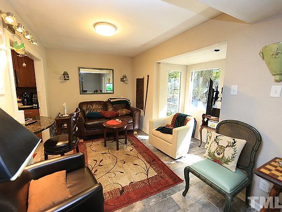 Very secluded & private driveway leads to a unique home situated on 2 wooded acres. This property located just 5 minutes from trendy downtown restaurants, DPAC & Duke University Campus. Interesting floor plan & interior design lends itself to gracious entertaining & magnificent views of adjoining flora & fauna. Detached Garage has finished apartment or man cave. Inviting patio w/fire pit affords panoramic views of park like grounds. Stainless Steel Kitchen w/all new appliances & Granite Countertops.