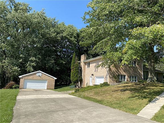 Enjoy the comforts of this Well Built Brick Veneer 4 bedroom 2 1/2 bath Neshannock Twp. home situated on nearly 1.35 acres. Large Eat in Kitchen is terrific for the gourmet cook offering lots of counter space and new stainless steel appliances. Sliding doors off kitchen to oversized cement patio overlooking private back yard. Formal Dining room with French doors open to formal living room Dining room and living room are underscored with beautiful hardwood flooring. Upper level hosts 4 great size bedrooms. Master suite is designed with new hardwood flooring and newly remodeled bath with ceramic tiled shower, modern concept open shelving and heated towel rack. Two large closets in master bath. All double closets in other bedrooms. Finished lower level is great for entertaining and opens to an additional cement patio great for summertime fun. Baseboard heat adds comfort during the winter months. Single car attached garage plus detached 2 car garage is a car lovers dream.
