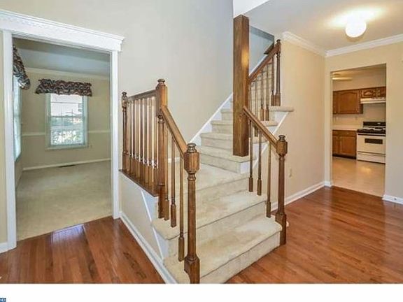 The lovely Ellington model in desirable Gwynedale! This center hall end unit shows beautifully! Enter the 2 story foyer with brand new hardwood floors, Tiffany style ceiling light, guest closet and powder room. French doors lead to large living room with triple window and crown molding. Flanking the other side of the foyer is the bright dining room with crown molding, a chair rail and Williamsburg chandelier plus a pass through to family room. The large eat in kitchen features a pantry, gas self cleaning stove (like new), dishwasher, brand new Moen goose neck faucet plus lots of counter and cabinet space. The adjoining laundry room includes a gas dryer, washer, extra room for household products and entrance to one car garage with opener. The well lit family room has brand new hardwood flooring, vaulted ceilings with two skylights, sliding doors to newly painted deck, wood burning fireplace with wood mantel and curio shelving. The second floor houses a large master en suite with ceiling fan, dressing area with very ample walk in closet, double closet and a linen closet! The bath has double sinks, large mirrors with a medicine chest, tub, separate shower and ceramic tile floor. The remaining two bedrooms each feature double closets. The hall bath has had minimal use and is in pristine condition. Most rooms have been freshly painted in neutral tones. This unit is right across from the well shrouded tennis courts, has extraordinary extra parking available and is on a cul de sac. Close to all services, restaurants, shopping and major roads. Gas heat, central air.