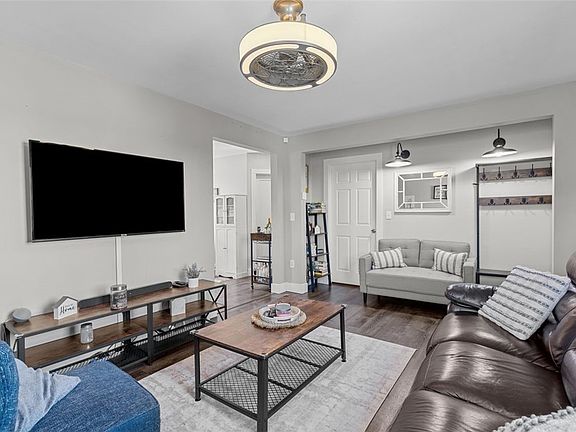 Super cute 1.5 story sitting on a double lot, located in Canon McMillan School District! Kitchen and dining room combination with brick accent, stainless stove and dishwasher. Cozy living room with luxury laminate hardwood planks. First floor bedroom is now used as office. Updated full bath on main level with subway tile shower, separate vanities. Upper lever master bedroom with half bath, second bedroom, and sitting area. Large full basement for storage and laundry area. New back patio to sit and enjoy the back yard. Close proximity to Southpointe! The second lot can be accessed from W Howard Street, used as additional yard space or built on, shed is on this lot.