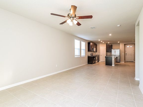 Take a closer look at this three-bedroom, two-bathroom rental home in Auburndale, Florida. You will appreciate the open-plan arrangement of the living room, dining room, and kitchen. Soothing-toned walls and flooring make the living room a pleasant place to enjoy family and visitors. A lighted ceiling fan also enhances the area. Pull up your bar stools to the kitchen island, which is perfect for casual dining, food prep, or chatting over a cup of coffee. Stainless steel appliances and dark-toned cabinets create an appealing kitchen. The home also has a bonus family room. The primary bedroom offers a peaceful escape with natural lighting, a generous closet, and dual sinks in the en suite bathroom. Relax on the paved patio in the grassy backyard. Schedule your home tour now.