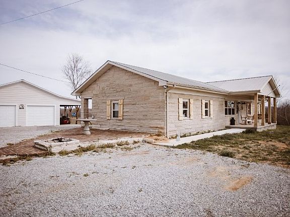 Interested in a quiet country road with spectacular open views? This beautifully remodeled Bedford stone home is located conveniently off Highway 90 near the Alpha community. The house features new interior throughout including new kitchen cabinets, new bathrooms, new windows, light fixtures, new HVAC and flooring. This house packs a lot of features into its 1562+ - square feet. Along with a central open living area, you will find a raised ceiling that offers an unexpected modern feel to a traditional style home paired with the trending style of the kitchen and rocked fireplace that unites the space. A conveniently located laundry room tied to a large pantry, and closets in each room provide clean storage options throughout the house. Special options outside the house include: a two car detached garage with porch, front and back porches, bricked walkways and fire pit, a concrete pad with fence for keeping dogs or other animals safe, new shutters that give the home an updated feel, and sprawling views of beautiful Wayne County farmland. Call today to schedule a showing.