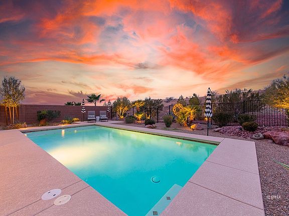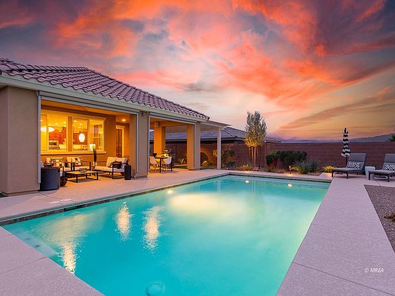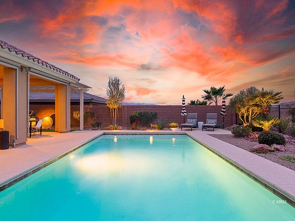 Simply stunning! This gorgeous home is situated on a generous .17 acre lot and backed by a natural desert bluff. The yard is incredibly private and thoughtfully designed with indigenous plants, trees, tropical plantings, extended covered patio, electric sun shades, pergola, synthetic turf and a heated SWIMMING POOL. The interior is well appointed with a modern glass door, large tile and real wood flooring, Plantation Shutters, new lighting and ceiling fans, surround sound and custom paint. A large Quartz island anchors the open kitchen and the granite counter tops, stainless steel appliances and tile back splash add a beautiful touch. The built in wine refrigerator, induction cooktop, upgraded range hood and new single basin sink update the space. The floor plan is open and the den/office is a versatile room. The main bedroom has a sizable ensuite and walk in closet. The guest bathroom has a modern tile surround shower that reaches to the ceiling and the new counter and sink are attractive. The garage has an epoxy coated floor, AC unit and three large ceiling racks, perfect for storage. Owner/Agent.