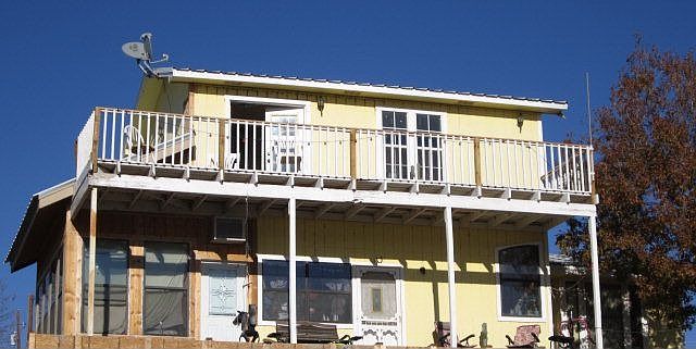 Behold, the Lake will rise again. A Rain Dance has been ordered! Approx. 55' of water frontage. Neighbor reported this drought is 1st in about 50 yrs that waterfront has been this low. Typically a fantastic lake view. Cool lake house that could serve as a rockin' getaway, but nice enough for year round living. Upstairs master complete with french doors balcony. Recent carpet & laminate wood floor.