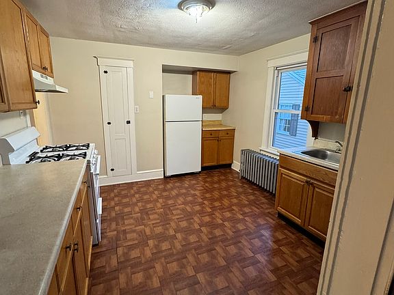 Dining roomNew gas rangeNew refrigeratorRear deckWood parquet floorsLarge eat-in kitchen