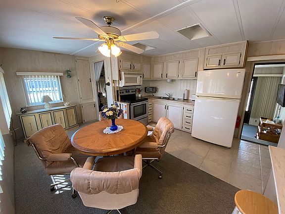 You’ll fall in love with this spacious 2 bedroom, 2 bathroom turnkey modular home where you own the land and dwelling boasting plenty of parking, outdoor seating and a backyard shed. This home flows beautifully from the open living/dining area into the attached Florida room. Extended off the kitchen is the laundry room. All appliances and furniture included, washer and dryer, stove, refrigerator, dining room table and chairs, 2 queen beds with new mattresses, sofa, 2 lazy boy recliners and much more. Plenty of closet and built in cabinets for storage. Many windows adding an air of sophistication. Very friendly, gated, no aged restrictions community. Vinyl siding, roof-over and humidistat. Amenity rich community, includes heated indoor and outdoor pools, jacuzzi, tennis and pickleball courts, and much more as well as several planned actives thought the year! 2 pet parks, across the street from Love Boat Ice Cream, minutes from Ft. Myers Beach and Sanibel Island as well as shopping. Make this your winter getaway, or your full time residence!