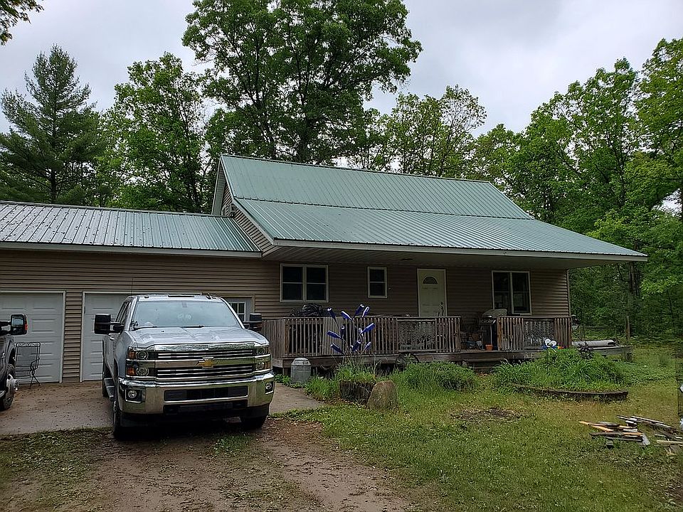 Charming home tucked away on 7 wooded acres, offering lots of great amenities to a new Buyer. The home has been well cared for and just had the floors refinished, new carpeting installed, and the 2.5-car attached garage has just been drywalled and ready for a new Buyer to finish. The home is heated with radiant floor heat and a pellet stove located in the living area. There are 2 bedrooms, 1 on the main floor and 1 upstairs, plus a non-conforming 3rd bedroom upstairs. There is a full clear span unfinished basement with an egress window, and this too has radiant floor heat. The backyard is partially fenced and there is a 30x50 pole barn with cement floors. 2 separate parcels make up the 7 acres, the home sits on 5 and the other 2 acres is vacant. This would be the perfect place to call home for the holidays, so be sure to check out all the details and schedule your showing today. (Aerial property lines are approximate)