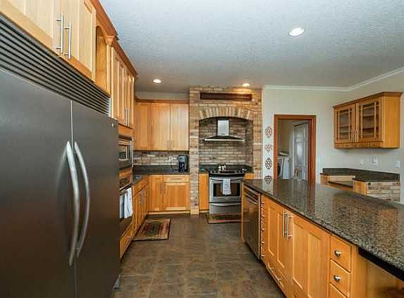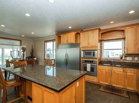 Honey stop the car! 5 BR 3 BA ranch, 3300+ fin sf on 1 acre w/ lots of extras! The main level features front office/bed. Custom kitchen w/ brick accent, tile floor, SS appliances - built-in oversized fridge & freezer, built-in oven & microwave + slide-in oven w/ SS vent hood. Maple cabinets, granite counters, lrg island w/ breakfast bar, & drop-zone/charging station. The dining room leads to a screened-in composite deck & then out to the patio & hot tub. Main level laundry. Spacious master bedroom w/private bath w/ tile floor & dual vanity, large custom-tiled double shower, private toilet & walk-in closet. 2nd full bath & 3rd bedroom complete main level. Taking you to lower level w/ finished family room/rec room w/ pool table, 2 bedrooms, 3rd bath, plus a theater room w/ seating & surround sound! Utility room w/storage. 3 car garage w/ workbench, ext counters & shelves. Extra parking, & 3 zone heating/cooling (all electric). Country living close to Des Moines, no gravel & SEP Schools.