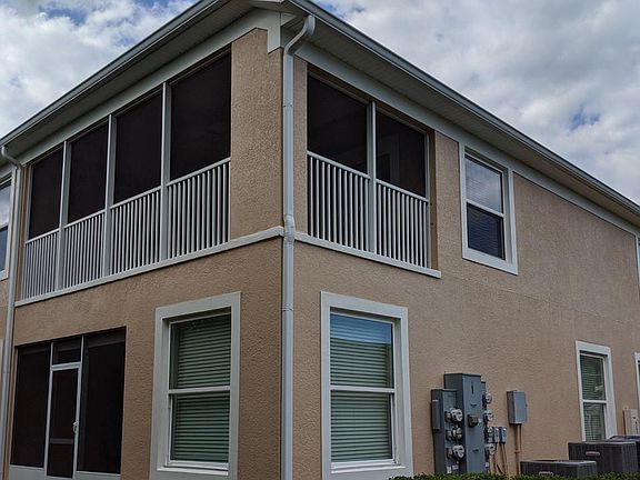 One of Florida's Premier 55+ senior active lifestyle community. Popular Sweetwater 1797sf Spoonbill, a 2nd floor condo built 2014 featuring 2 split bedrooms, 2 baths, flex room (den, office/study, TV room, craft or game room, etc.), single car garage, driveway parking, wonderful kitchen, formal dining area, café nook, gathering room that opens to spacious screened lanai (wooded view) perfect for hanging-out/dining. Owners' suite (shower with bench, double vanity, walk-in closet). Community activity center includes indoor heated pool, outdoor pool, well-equipped gym, exercise classes, crafts area, billiards room, bocce ball courts, pickleball and tennis courts, many monthly activities/special events. The community is located minutes away from shopping, eating, medical centers and the beach.