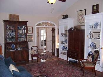 Relaxing & elegant 1 flr living. Bright spacious rms; open kitchen & family room w/adjacent breakfast & sunroom; wonderful trim & built-ins; 2 sided fireplace; vaulted & tray ceilings; great storage & upgrades throughout; large finished rm over garage; delightful deck & enclosed pvt garden to rear. Excellent country location in golf community convenient to both Wmbg & Richmond. Golf club optional.