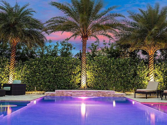 Modern luxury awaits at this incredible one of a kind ranch home with pool in Canyon Trails. The home boasts IMPACT GLASS throughout. Entering you will be impressed by the custom lighting fixtures throughout. The home has SMART HOME Technology to operate almost everything in the house. The stunning kitchen boasts 2 tone kitchen counters, 42'' Antique White Wood cabinets with Crown Molding & Pull Outs as well as Stainless Steel Appliances including a built in wine fridge. Out back is your own 5 Star Resort with Travertine Pavers, an oversized freeform pool with sunshelf & built in bar & incredible Palm Trees. The large master suite has California Closets a luxurious master bath with upgraded tile & cabinets. This home really is one of a kind & needs to be seen to appreciate all it has!