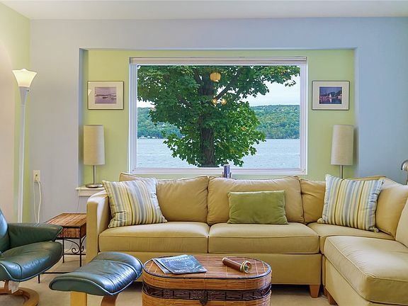 Keuka Lake! East Lake Road Gem. Drive to the door at this 2 story well maintained adorable cottage. All first floor living with first floor bedroom, full bathroom and laundry. Open living, kitchen, and dining with gorgeous dynamic elevated views of Keuka Lake. Sliders from dining area walk out on to large lake-facing deck. Upstairs 2 additional bedrooms and bonus room! Full basement for storage. The level beach has no steps from the road and a wonderful mix of grass and wade in beach with large permanent dock. Incredible water depth and views at the end of the dock. Access from lower East Lake Road for walking, biking and slow traffic! Home is well protected from Route 54 with wooded buffer. Square footage measures 1467, tax records are inaccurate. Delayed negotiations until October 9th @ 12pm.