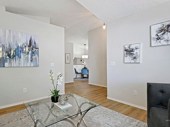 Tastefully remodeled single-level in central West Boise, close to the Village, shopping, parks, and schools! Updates in 2023 include a new roof, interior/exterior paint, flooring, lighting fixtures, plumbing fixtures, renovated bathrooms, and an updated kitchen featuring stainless appliances, quartz counters, and a full tile backsplash. The open floor plan offers three living spaces -- including a gorgeous sun room with vaulted ceilings that overlooks a park-like backyard with mature trees. A MUST SEE!