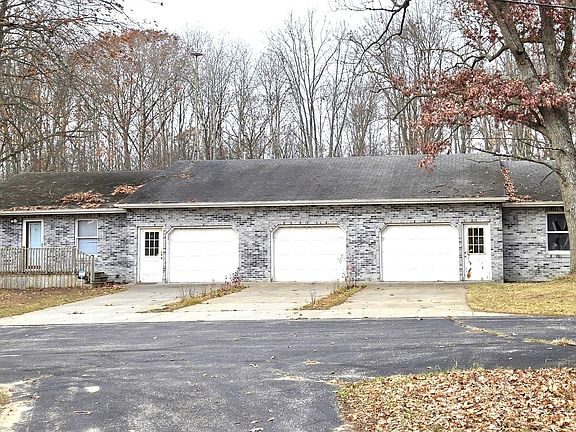 Nestled on a 9.9-acre expanse, this estate boasts a substantial 40x84 pole barn and a versatile residence that can effortlessly transition into a duplex or remain a single-family home. The residence comprises two distinct units, each featuring two bedrooms and two bathrooms. One unit is impeccably finished, inviting you to settle in immediately, while the other awaits your creative vision to complete it. The possibilities are endless: transform the additional space into a cozy mother-in-law suite, a profitable rental opportunity, or simply expand your living quarters. Additionally, the property includes a generous 3-car garage at the front and a convenient 1-car garage at the rear. Surrounded by the tranquility of a predominantly wooded landscape, the impressive 40' by 84' pole barn stands ready to accommodate your toy storage and all of you hobby needs. The carport is reserved for the seller