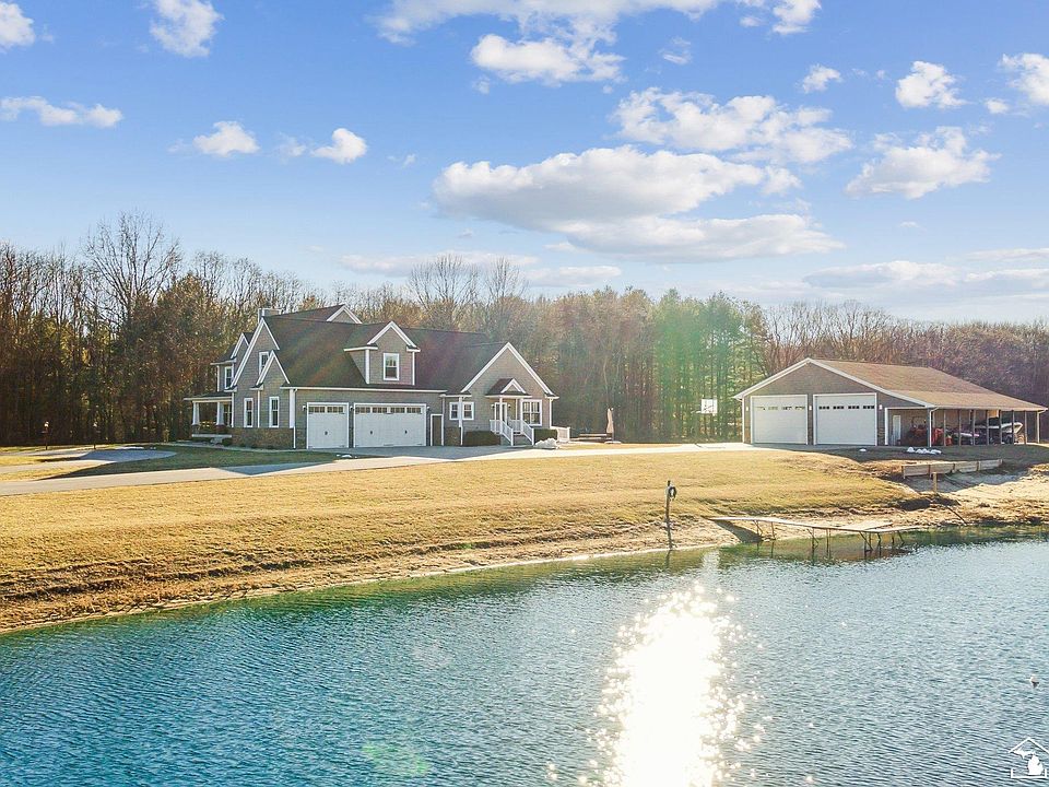 Luxurious Private Parasdise offers 15.82 Acres w/5+/- Acres of Woods & Trails! Amazing 3/4 Acre Pond w/beach area, dock, and Private Well! Oversized 60 x 40 Stick Built in 2013 Pole Barn w/12 ft. overhead doors with commercial openers, concrete flooring, electric & 10 ft. overhang for covered parking, or use it as covered patio to relax by the pond! Amazing Options in this custom crafted home! Use as 1 home with 5 beds/4 baths or 2 homes under one roof! Main home boasts towering 9 ft. doors, 3 beds (all have walk ins!), 3 full baths, beautiful hardwoods & ceramic tile, custom Snow cabinetry, quartz countertops, great room w/wood burning fireplace surrounded by bookcases, formal dining w/ custom entertainment hutch, and sunny vaulted sunroom with built ins! The primary bed has separate tub/shower and dual walk ins! There is a back deck which leads to ample stone patio with firepit! 3.5 Car Attached Garage w/Epoxy Flooring! 2nd Attached MIL HOME/College or Guest home/ OR Amazing Air BNB potential has 2 beds, full kitchen, living room, private full bath too! ADA accessible/user friendly! Entertainment Bonus Room upstairs has plenty of room to host big game nights! Basement over 2400 sq. ft. pre plumbed for bath has sunny daylight windows with 9 ft. ceilings! 7000 sq. feet of home (4850 up+2496 bsmt!) Ida Schools! All Appliances Incl.!