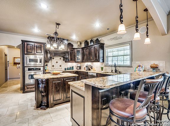 Helotes hidden Gem! Elegant custom home features stunning architectural detail. Enjoy your quiet nights with a beautiful pool and an outdoor kitchen. Spacious Open floor plan, high ceiling create an elegant entertainment space for all occasions. Has a well to supply water to the home, pool and yard. Impressive floor to ceiling fire place accents the Living room. An automatic Iron Gate welcomes you to this Beautiful home! Come and experience the tranquility and peacefulness of the Hill Country.
