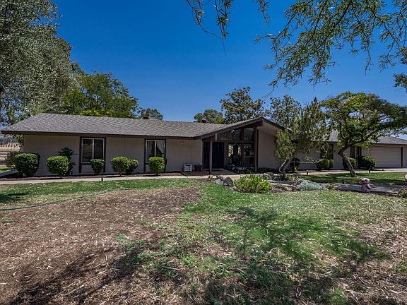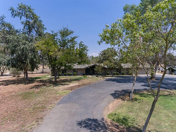 WOW! This 9.24 acres is one of the nicest pieces of land in NE Clovis with Clovis Schools. The property is at the end of a cul de sac street, which is not busy. Huge pie shaped lot with a pond, mature trees, fully fenced with a security gate and great views of pastures,seasonal creek and the Sierras. Own your own piece of paradise! Ranch style home is well built with an open floor plan, isolated huge bedroom at one end of the house. Kitchen has new stainless appliances, breakfast bar and is open to the dining and living areas. Covered and uncovered patio with stone and pavers, overlooks the pond and has a great outdoor kitchen for all your entertaining needs.What a great place to raise a family! Set up nicely for horses with multiple riding arenas, pastures with shelters, huge pole barn, tack room could be a nice shop. Must see to appreciate. Be sure and view the aerial video.