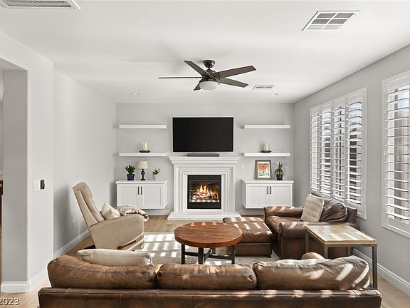 Stunning and well-upgraded 5 bedroom home located in the sought-after Summerlin community of Allerton Park. The house has been renovated from top to bottom with brand new toilets, HVAC system, flooring, countertops, and cabinets, making it a turnkey option for anyone looking for a move-in ready home. The property also boasts an abundance of storage space and cubbies, making it ideal for families or individuals who need ample space to store their belongings. Additionally, the downstairs bedroom with a bathroom is perfect for guests or as a private suite. One of the standout features of this property is the above-ground spa with magical views of the Red Rock Mountains. Residents can also enjoy the community pool, playground, and roving security, which adds to the appeal of this beautiful home. Overall, this property is an excellent option for anyone looking for a stylish and modern home in a desirable community with great amenities.