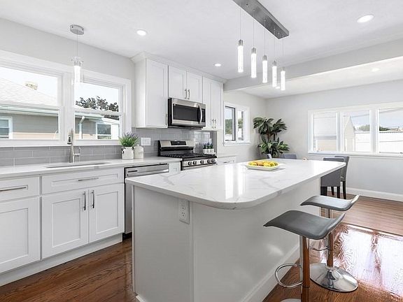 ** AVAILABLE NOW** Tastefully renovated 3 beds 2 baths condo in a solid red brick front building with off-street parking located in the desired Wellington neighborhood on a quiet street. Beautiful meticulous brickwork both outside and in the entranceways. Spacious and bright full of ample natural light. BRAND NEW heating system and central A/C, NEW hot water tank, NEW LED lighting, and gleaming hardwood floors. Kitchen features stainless steel appliances, granite countertops, central island, in unit washer/dryer connections. New back door deck leading to common outdoor patio with mature grape vines. Master bedroom featuring en-suite master full bath with modern standup shower. Sizeable 2 more bedrooms with nice closets. The second full bathroom features a traditional bathtub with shower. Huge basement offers extra storage. Pet Negotiable! Near Wellington T-Station and Station Landing. Enjoy easy access to nearby supermarkets, restaurants and Assembly Row shopping, as well as convenient highway access. BROKER FEE REQUIRED!