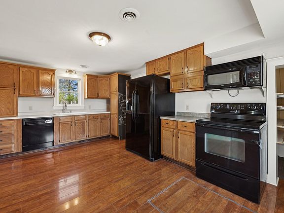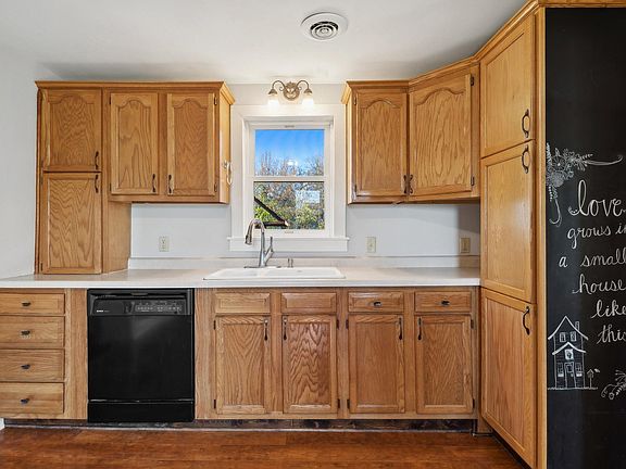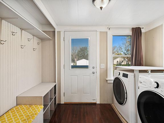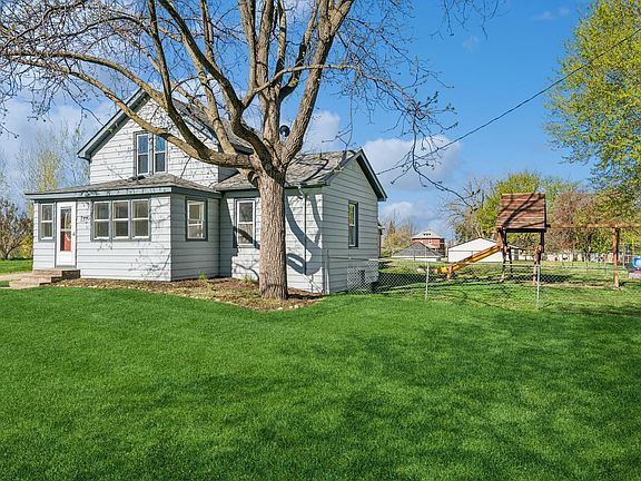 Welcome to this charming 4-bedroom, 1-bathroom, 2-story home with steel siding and vinyl windows. As you enter, you'll be greeted by a large eat-in kitchen featuring plenty of oak cabinetry, a walk-in pantry, and stylish engineered hardwood floors. Convenience is key with main level laundry/mudroom right off the kitchen. The main floor also offers a versatile bedroom, perfect for guests or a home office, as well as an enclosed front porch! Upstairs, you'll find three additional bedrooms, providing ample space for the whole family. Outside, a generous oversized 2-stall garage (24'x36' insulated & Heated) offers plenty of space for parking and storage, a partially fenced yard, large level lot (0.39 Acres) and pond views. Don't miss the chance to make this charming house your home!