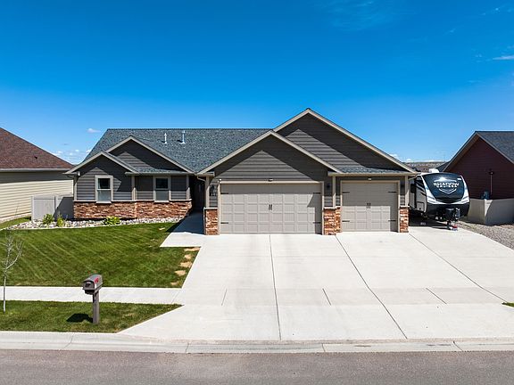 DREAM HOME OPPORTUNITY! Built in 2015, this 5 bedroom 3 bathroom home holds 2,896 square feet with a 3 car attached garage with extra space for a work shop in the rear and features 220v plug! The exterior features at this house are very unique, as the home features extra RV parking on the side with full RV Hook ups! (Electric, water, and dump). Granite counter tops in the kitchen help compliment the home well along with main floor laundry. On the main floor, you can also find 3 bedrooms and 2 bathrooms. Down stairs you can find a large living room with fireplace, 2 bedrooms, and 1 bathroom. Out in the back yard, you have a large deck for outdoor activities and a kids playset! A shed for storing any yard tools if need be. A small dog run on the side of the home is included as well. Call Wyatt Gremaux at 406-750-5125 or your real estate professional for a private viewing.