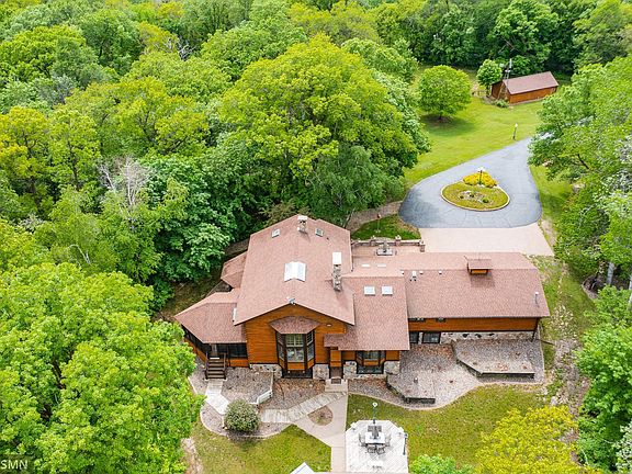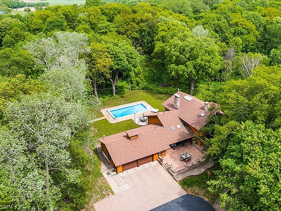 High-end Entertainer's dream home with privacy setting on the outskirts of town. Never before on the market. Take the private drive to this beauty that sits on top of 4+ premier acres of luscious green trees. A beautiful porch welcomes you to this charming 4 bedrooms 5 bath estate. Everything about this property was custom built & no expense was spared. Cathedral ceilings with exposed wood beams. Open floor plan & large windows for natural lighting. Floor to ceiling fireplace gives major wow factor. All bedrooms have walk-in closets, primary suite has dual walk-in closets. Main level has Built-in wet bar, indoor hot tub new in 2022, sauna & 4 season porch. Spacious lower level features family area & 2nd kitchenette. Walk right out your basement to relax on those hot summer days pool side with a cute pool house equipped w/ a bathroom & sink. 3 large sheds offer tons of storage & business opportunities are endless. Fenced in areas for animals. Amazing & Rare property. Truly a MUST see!