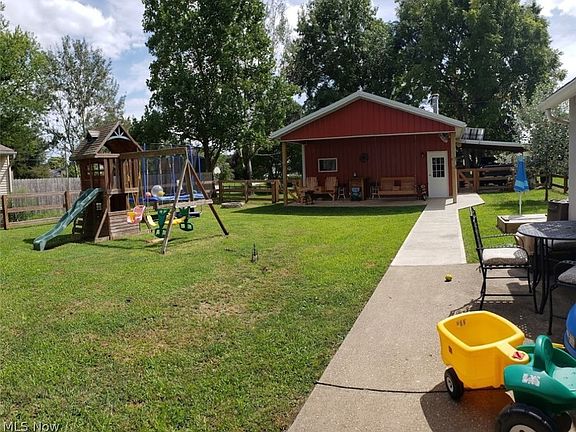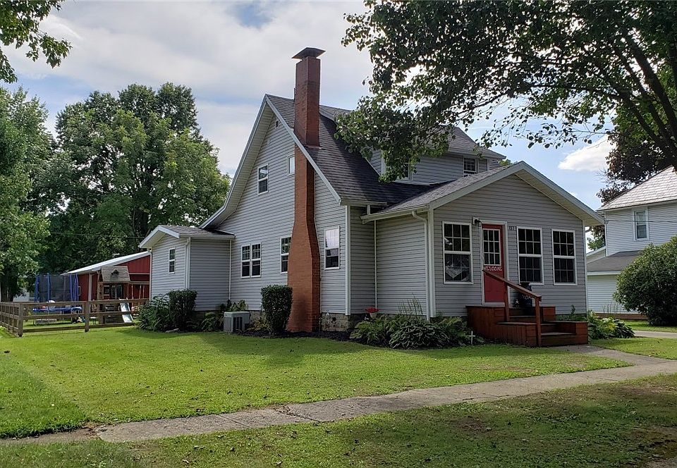 Enjoy the small town community home with 3 br 2 bath - full basement - many updates! Custom painting - newer updates to kitchen - ceramic floors that lead into the dining room as well - plenty of natural sunlight - a master bedroom and full bath conveniently located on main floor. The living room boost so much character with beautiful BAMBOO wood floors built in book shelves and the brick fireplace - open wood spindle staircase - and an adjoining closed in front porch. 2 additional br with lots of closet space upstairs and full bath - a full basement with additional heat source - ready to make additional living space! HOT TUB -fenced back yard - everything here! Excited to share that this home has a new HUGE detached garage that is immaculate - insulated - heated - cemented - high doors - for all your needs! In addition another 1 car detached garage and a 1 vehicle carport in back and a 1 vehicle carport in front. You must see it!