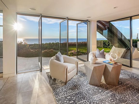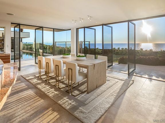 Featuring over 160 feet of ocean frontage on an extra wide lot with breathtaking 180 degree views from La Jolla to San Clemente, this exceptional home boasts the ultimate indoor/outdoor lifestyle. This award winning property has been recognized for its noteworthy craftsmanship & use of material. This home offers a spectacular entry with soaring ceilings & doors that all open to the beautiful back patio. A copper-clad arch rests partly inside & partly outside of this special home. A sparkling pool & jacuzzi wraps around the detached office / guest bedroom. Entertain & dine-al-fresco on the patio with the BBQ or relax on one of the upstairs ocean-facing decks. Each of the 3 en-suite bedrooms upstairs offer panoramic ocean views & decks. The master retreat opens to the most gorgeous vantage point of the coastline. In addition to driveway parking on both sides of the home & a 2 car garage, this eco-friendly house has solar panels & two Tesla power walls for storage. Nestled in the heart of Del Mar, this property is walking distance to the area's best restaurants, shops & attractions. Coastal living at its finest!