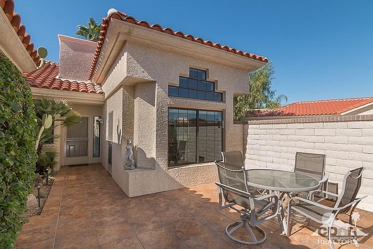 Lovely 3 bedroom single level condo in desirable Courtyards' section of Desert Falls CC. Light, bright, and turnkey furnished - an abundance of windows and sliding doors welcome the sun into all living areas of this condo. Cathedral ceilings add to the expansive feel of this desirable floor plan. Slab granite countertops grace the kitchen and wet bar. The master bath has been updated with renovated shower, bath and fireplace surround. Beautiful tile throughout the living areas and vibrant tile on front courtyard and rear patio. Ideally situated at the end of a culdesac and steps from the pool for your convenience. Enjoy the stunning blue desert skies from the privacy of your front courtyard. Tennis with 9 lighted tennis courts and an updated fitness area are included with homeownership. Desert Falls Country Club offers private membership or pay-as-you-play opportunities. Desert Falls CC is located mid-valley, easy I-10 access and is walking distance to dining and retail.