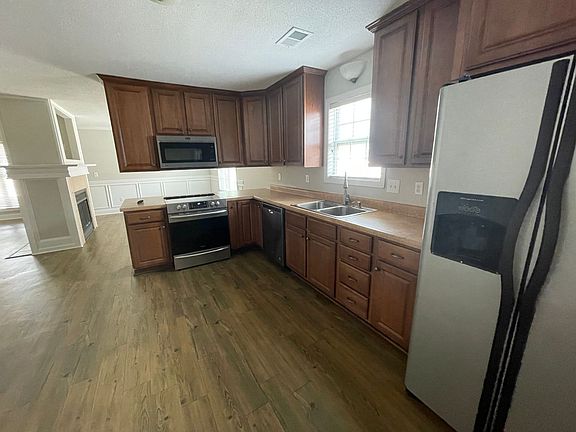 Welcome to this charming 3-bedroom, 2-bathroom home located in Byron. This conveniently located property offers a fully fenced yard, providing privacy and security for small children and pets. Enjoy the outdoors on the covered patio, perfect for relaxing or entertaining guests. With a 2-car garage, you'll have plenty of space for parking and storage. The house is situated close to peach park, allowing you to easily enjoy the beauty of nature and all it has to offer. Inside, you'll find modern stainless steel appliances in the kitchen with a semi open floor plan. The cozy double-sided fireplace adds a touch of warmth and ambiance to the living space. Say goodbye to carpets as this home features laminate and tile flooring throughout, making cleaning a breeze and providing a sleek and modern look. Don't miss out on the opportunity to make this house your home. Contact us today to schedule a tour and see all the wonderful features this property has to offer.