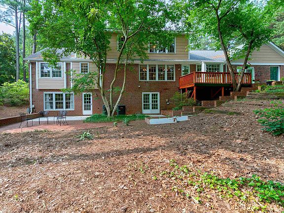 1.12 ACRE PRIVATE LOT IN THE MIDTOWN/NORTH HILLS AREA!! NO HOA-Zoned R4, Investors! This home's elegant setting feels like being in the country, yet it is so close to upscale restaurants, shopping, Ravenscroft and other schools! The inviting large front porch welcomes you inside to an open flow perfect for entertaining in the huge Family Room with large wet bar and gas Fireplace which opens to the large Dining Room, Den and Living Room w/wood burning Fireplace. Or unwind looking at trees and nature from one of the patios or deck! The driveway extends behind the house and is used as a patio. New HVACs & Siding, Roof-2017. Unfinished Basement has Kitchen area and can be an In-Law, Teenager Suite or Apartment with separate entrance! This home also features 2 Primary Suites! Exquisite Property in the heart of Raleigh! Don't miss this opportunity! Price adjustment for buyer updates!