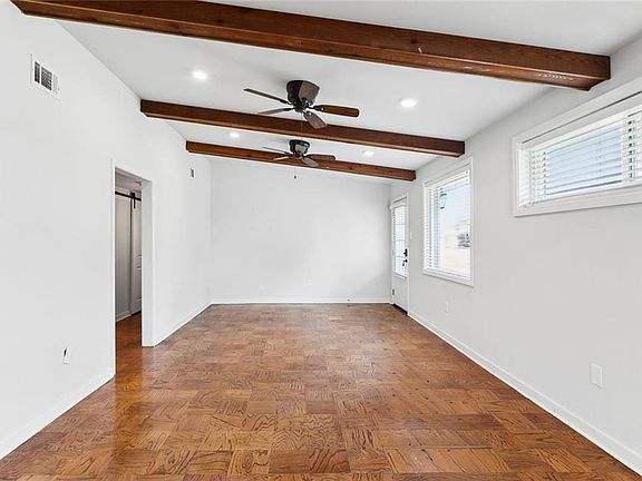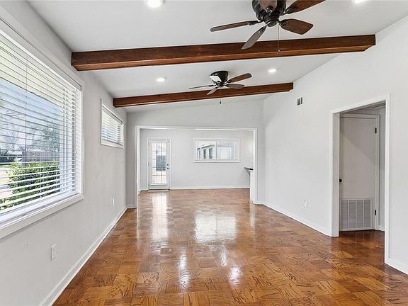 s beautifully renovated brick ranch in the heart of River Ridge offers 3 bedrooms, 2 baths, and an inviting living room with vaulted ceilings, exposed wood beams, and classic parquet wood floors. The kitchen is a chef’s delight, featuring stone countertops, stainless steel appliances, a built-in range/oven and microwave, and ample counter space—great for cooking and entertaining. An adjacent dining room provides a cozy space for gatherings. A detached 421 sq. ft. bonus room (not included in the main living square footage) offers endless possibilities—great for a home office, workout space, or game room. Additional highlights include an interior laundry room, a covered carport, and a spacious yard. Don’t miss out on this move-in-ready gem in a fantastic location!