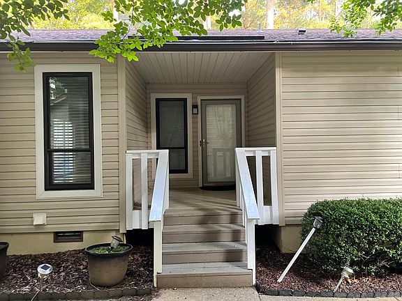 Open green space, one story living, and only one shared wall. It's the private place you have been seeking. Lawn care provided. Unit comes with washer, dryer and fridge. Well maintained, cul-de-sac, quiet street just two turns from Kildaire Farm retail district and a short distance to the downtown Cary Park and restaurants. Covered side porch; back deck overlooks deep yard and wooded view. Health & swim club optional at tenant expense via Kildaire Swim & Racquet Club. Extensive sidewalks and greenways in community. Please make application. Text to schedule showing. Standard NC lease agreement. Tenant pays utilities. Owner is licensed NC real estate agent.