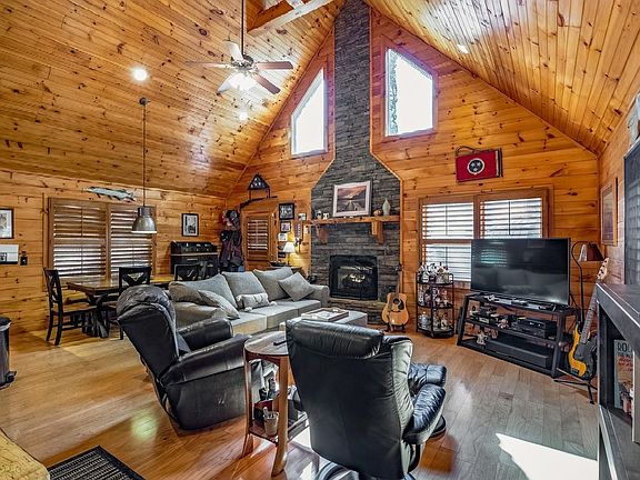 MOUNTAIN LIVING AT IT'S BEST! This 3 Bedroom, 3 Bath Mountain Cabin, Kitchen Features Stainless Steel Appliances, Granite Countertops, Breakfast Bar, Lots of Cabinets, Open to the Dining area! Spacious Great Room W/Vaulted Ceilings, Stack Rock Gas Log Fireplace, On Suite Bedroom w/Private Balcony, Bath and Spacious Closest! 1 Guest Bedroom and Additional Bath on the Main Floor. Terrace Level Has a Media/Game Area, Guest Bedroom, Bath & Laundry! Complete Wrap Around Porch is Perfect for Enjoying Nature! The Level Usable Yard has a Firepit area Perfect for Smores, Also has a Storage Building & Plenty of Parking! Seasonal Views, w/some Vista Pruning could Have a full-time view. This Cabin Would Make a Perfect Vacation Rental or Full Time Home! Located In TN, No State Income Tax! Close to Whitewater Rafting, Biking & Hiking! Approximately 5 Miles to Downtown McCaysville/Copperhill, for Dining & Shopping!!!