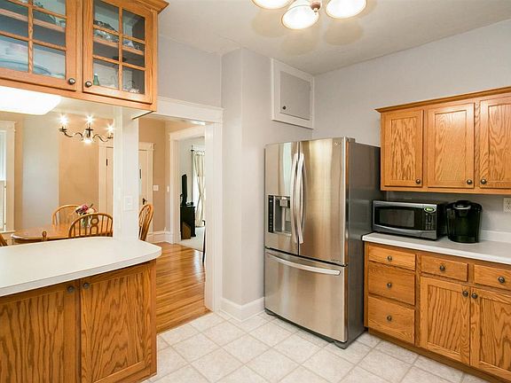 Beautiful and truly unique Victorian style home conveniently located close to shopping and dining. The remodel in 2000 included windows throughout home, blown wall insulation, siding and roof, additional office and storage in attic space to complete a third floor of the home. Beautiful original hardwood floor in dining room and 9 foot ceilings throughout both floors. Furnace new in 2013. LED lighting throughout. Handy back porch entrance opens to large back deck overlooking treed backyard. NEG:deep freeze