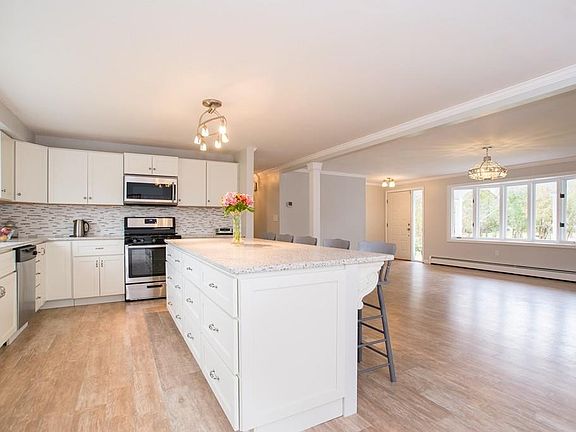 Capturing the country charm of olde Andover, this sunny, stylish contemporary ranch was just completed, reconfigured & renovated to the to the highest craftsman like standards with 3 bedrooms, 2.5 baths, finished basement, & 2 car garage. Nestled in the heart of Andover's countryside, it commands an acre of tamed farmland which is only 7 minutes to routes I-93, I-495 & minutes to Andover center. Offering a fresh, clean design with a great open floor plan to meet all needs of today's lifestyle featuring: bright stainless steel, gas kitchen, breakfast bar island, granite counters, custom cabinets & backsplash. All open to the D/R, L/R with bay window & to the huge family room showcasing dramatic cathedral ceilings, 8 skylights, fireplace with custom mantle, marble surround, bluestone hearth, ceiling fan, picture window & access to a large deck overlooking green pasture with flowering spring shrubs, fruit-bearing apple & pear trees. Spacious master bedroom suite with walk-in closet, state of the art fixtures in the granite & tile master bath. Two additional equal bedrooms with shared designer bath.