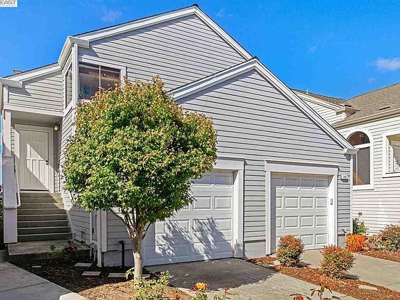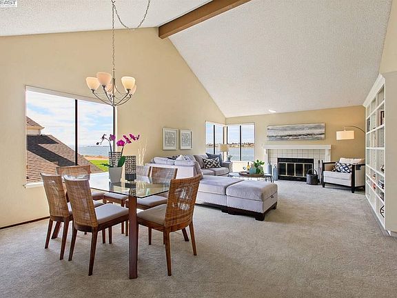 FANTASTIC BAY VIEWS! Bright, stylish upper condo with panoramic Bay Bridge and SF views. Super floor plan with SF views from living room, dining area, master suite/balcony. Lagoon views from 3rd bedroom/office. Light-filled top floor home with vaulted ceilings and a contemporary vibe. Sunny kitchen with new stainless appliances. Huge master suite with private bath, generous closet space and a balcony perfect for taking in the shore birds by day, city lights by night. Attached garage, reserved parking space and long driveway. Resort-like community offering lush greenbelts, community pool and spa. Easy commute to SF by ferry. Best location. Spectacular!