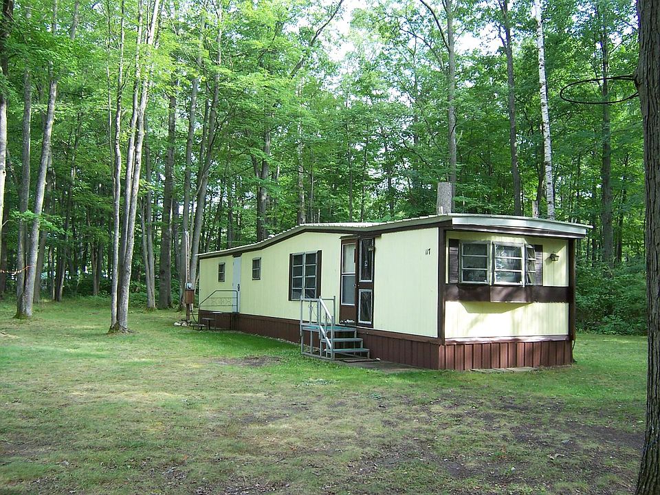 Mobile Home in great condition on 2 wooded lots. Space for a garage or pole barn. Metal roof, 2 sheds, newer furnace. Located close to the South Higgins Lake State Park, golf courses and state land. Lots back up to a green belt park. New septic and field in 2017!